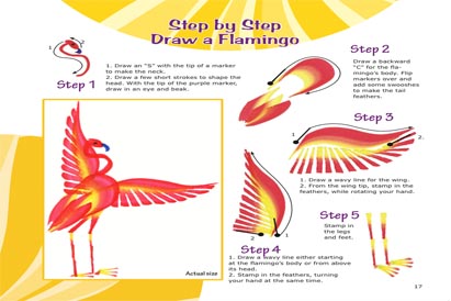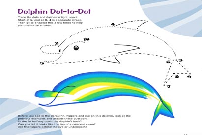 Alphabet for Biginners has simple step-by-step instructions beautiful color photography and illustrations to show how to draw each letter using dolphins, birds, fish, butterflies, turtles, frogs, flamingos and many more characters.