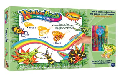 The RainbowBrush® Insects is not about phonics but about learning the alphabet in a fun and absorbing way, using exotic animals and swirling colors to create graceful, eye-catching and unique lettering from A to Z.