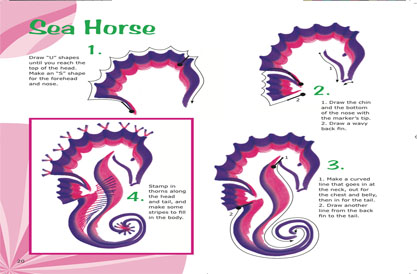 The 52-page Land & Seascapes book has simple step-by-step instructions beautiful color photography and illustrations to show how to draw each letter using dolphins, birds, fish, butterflies, turtles, frogs, flamingos and many more characters.