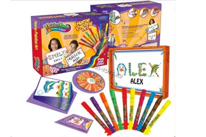 The RainbowBrush® Name Painting Grande is not about phonics but about learning the alphabet in a fun and absorbing way, using exotic animals and swirling colors to create graceful, eye-catching and unique lettering from A to Z.